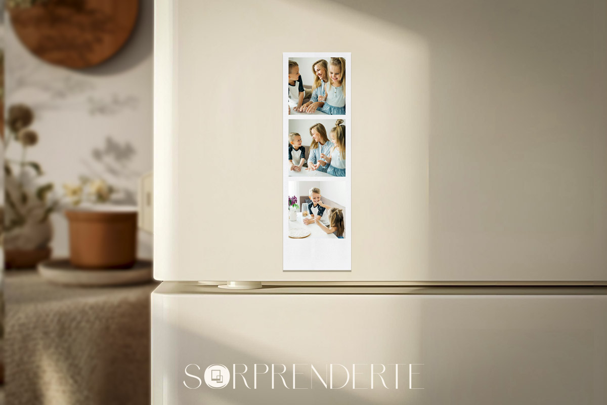 Convierte tus 18 fotos favoritas en 6 tiras magnéticas estilo Polaroid de 6×19 cm, cada tirá con 3 fotos. Personaliza fácilmente con un botón por tira que permite subir 3 fotos simultáneamente. Ideal para regalar, decorar o coleccionar recuerdos únicos.